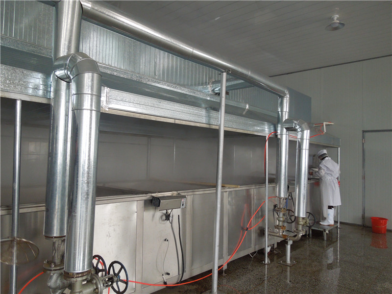 全自動面筋卷生產(chǎn)線廠家約需60分鐘(不包括停機時間).每市斤高筋干面粉,可洗出0.45市斤濕面筋.綜合上4、5、6所述的方法洗、排、慮四次即已洗好,取出筋.